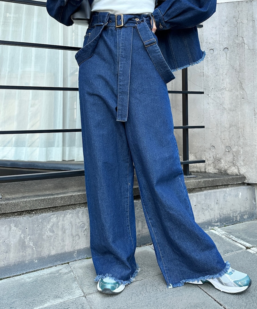 肩紐を外してボトムスとしても使える、マルチウェイなデニムオーバーオール。ベルト付きで、裾は折り返して丈感を自由に変えられる為、幅広い身長・体型の方におすすめです。ほどよいワイドシルエットが、着用するだけで旬なスタイリングを叶えます。